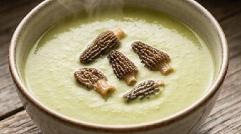 An asparagus and morel velouté definitely makes an impression on any table. People see “morels” and imagine a gourmet restaurant, advanced techniques, and three pans to watch at once. In reality: it’s a soup. A really good soup — but a soup nonetheless.