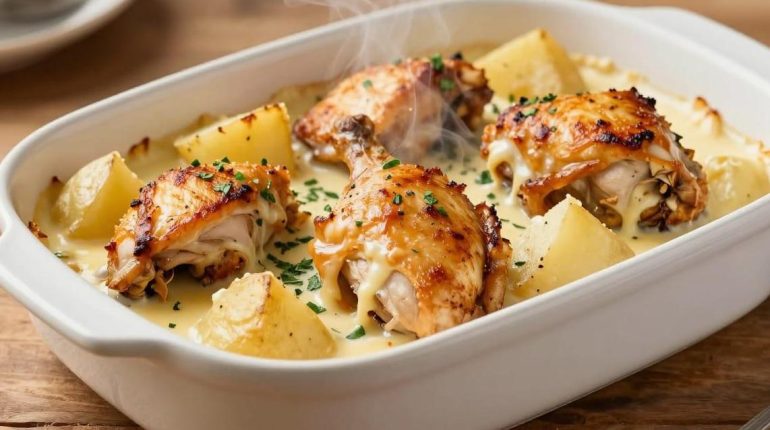 Baked chicken with potatoes and cheese sauce is a comforting classic that delights every table. However, obtaining perfectly tender meat requires special attention during cooking. The key to success lies in an often overlooked but formidably effective technique: regularly basting the chicken with its own cooking juices.