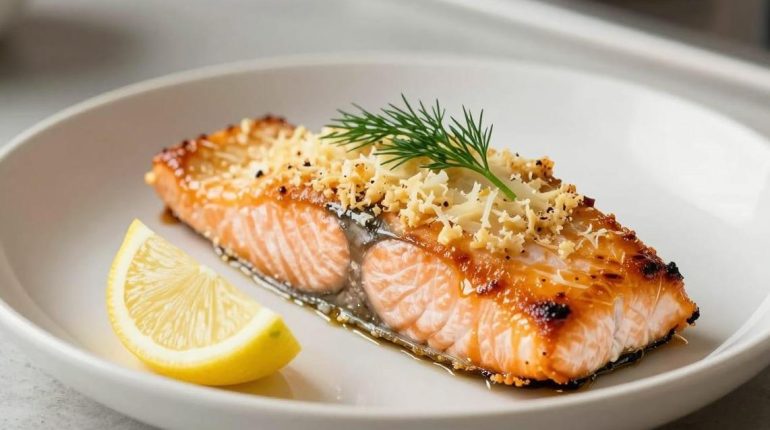 📌 Baked salmon in less than 20 minutes: the creamy Parmesan topping that replaces flavorless diet dishes