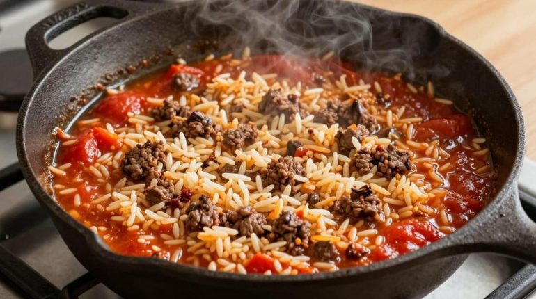 Preparing dinner in 30 minutes with just one pot is now possible thanks to this ground beef and cheesy rice recipe. This technique of cooking the rice directly in the broth and tomato sauce transforms an ordinary dish into a practical solution for busy weeknights. How does this American one-pan revolutionise kitchen organisation?