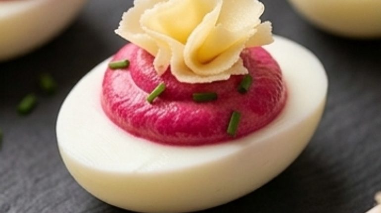 The hiss of water as it heats up. That’s where it all begins. Exactly nine minutes, and you get yolks that are still slightly creamy in the center — the ones that will blend with the beetroot to create this almost unreal pink filling, shiny like candy. A deviled egg that is anything but ordinary.