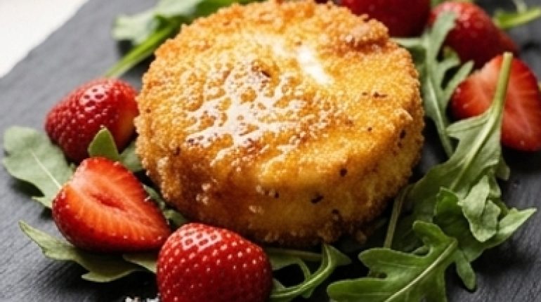 📌 Breaded Cabécous with Thyme and Balsamic Roasted Strawberries