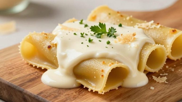 📌 Chicken Alfredo Lasagna: the individual roll technique that transforms the classic dish into a perfect portion