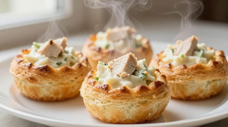 Chicken Pot Pie Cups revisit the traditional chicken pot pie in crispy individual portions. These little pies combine golden puff pastry, tender chicken, fresh vegetables, and a smooth creamy sauce. Perfect for a quick dinner or to impress your guests, they promise comfort and authentic flavors in every bite.