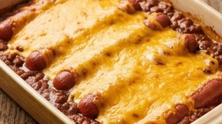 The dishes that feel like cheating are often the best. The Chili Cheese Dog Bake is exactly that: canned chili, beef sausages, shredded cheese, an oven. The result? A gratin that impresses as much as a dish simmered for three hours.