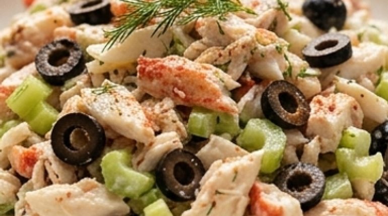 📌 Creamy Seafood Salad with Mayo and Black Olives