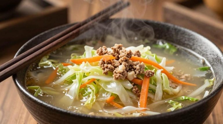 Egg roll flavor soup: the idea that reconciles indulgence and simplicity. This recipe deconstructs the classic American egg roll into a comforting broth version, with ground pork, cabbage, carrots, and aromatics. No more need for frying or folding techniques: all the iconic flavors are found in a warm bowl, ready in less than 30 minutes.