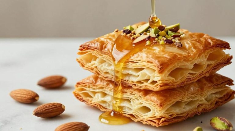 These dried fruit brick pastry millefeuilles prove that a gourmet dessert doesn’t require hours in the kitchen. Inspired by North African flavors, they combine the golden crunch of brick pastry with melting honey and crunchy almond and pistachio shards. An express recipe that transforms a few simple ingredients into refined pastry.
