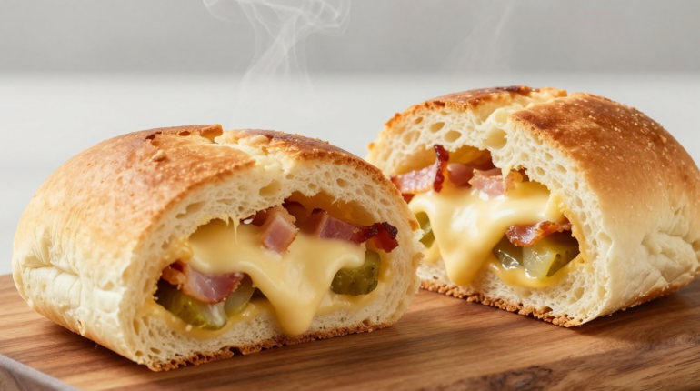 Garbage Bread transforms homemade snack codes by merging the spirit of pizza and the soul of a sandwich into a single stuffed loaf. Seasoned ground beef, crispy bacon, pickles, and melted cheese are rolled into a golden dough to create a flavor bomb ready in less than 15 minutes of preparation. This American comfort recipe wins over tables with its simple assembly and spectacular result that will delight your social evenings.