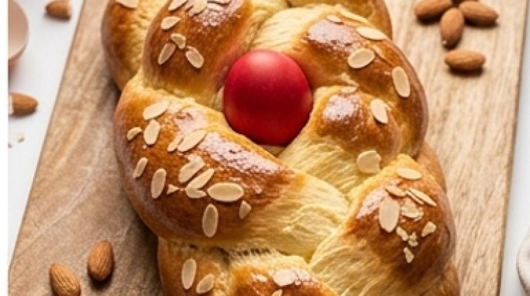 A scent arrives before everything else — warm orange, discreet spice, something slightly resinous that you don’t immediately identify. It’s the tsoureki baking, and if you’ve never made it, welcome to your new Easter tradition. A weekend, some patience, and this Greek brioche will redefine your definition of “brioche.”