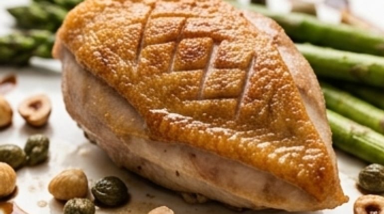 📌 Guinea Fowl Supreme with Green Asparagus, Hazelnuts and Capers
