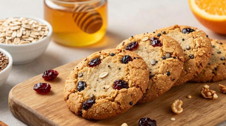 Sugar-free and flourless biscuits represent a healthy alternative to traditional treats. This recipe combines oat flakes, seeds, and dried fruits, all bound together by honey and orange juice. A nutritious snack that proves you can enjoy yourself while respecting your health goals.