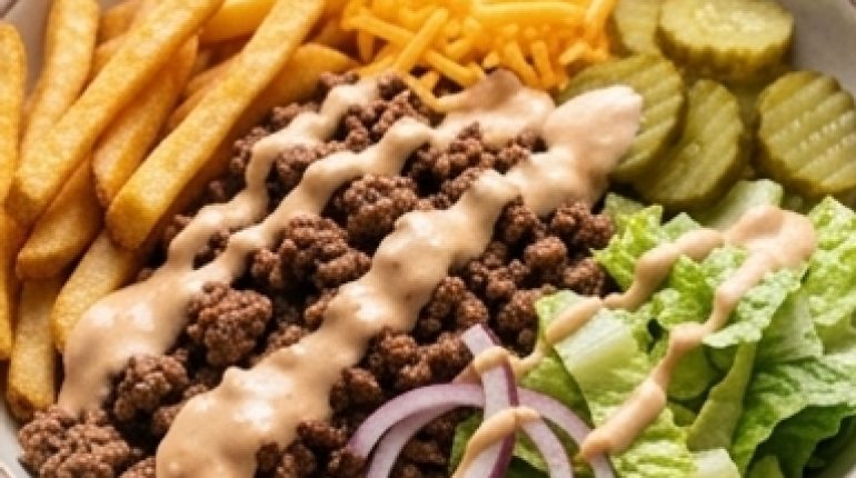 The burger bowl is probably the best argument against the sandwich. No more soggy bread, no more buns falling apart on the third bite — just the pleasure of a deconstructed burger, with everything that really matters. And for hosting without the hassle, it’s hard to beat.