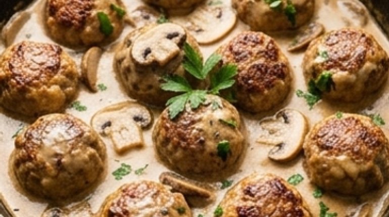 📌 Homemade Meatballs in Creamy Mushroom Sauce