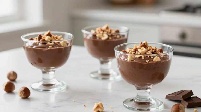 Melting, chocolatey and deliciously crunchy, the homemade Rocher cream reinvents the world of hazelnut pralines in a dessert version. With only three ingredients – milk chocolate, liquid cream and crushed hazelnuts – this ultra-fast recipe transforms your kitchen into a chocolatier’s workshop. An elegant dessert that impresses with its simplicity as much as its irresistible taste.