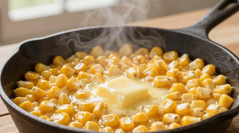 Honey Butter Corn: this creamy recipe makes children cry with joy and captivates adults. Ready in 15 minutes with only 5 ingredients, this skillet preparation transforms basic corn into an irresistible side dish. An American mother reveals her secret that unanimously charms all generations at the table.