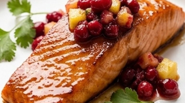 📌 Maple Glazed Salmon and Cranberry-Pineapple Relish