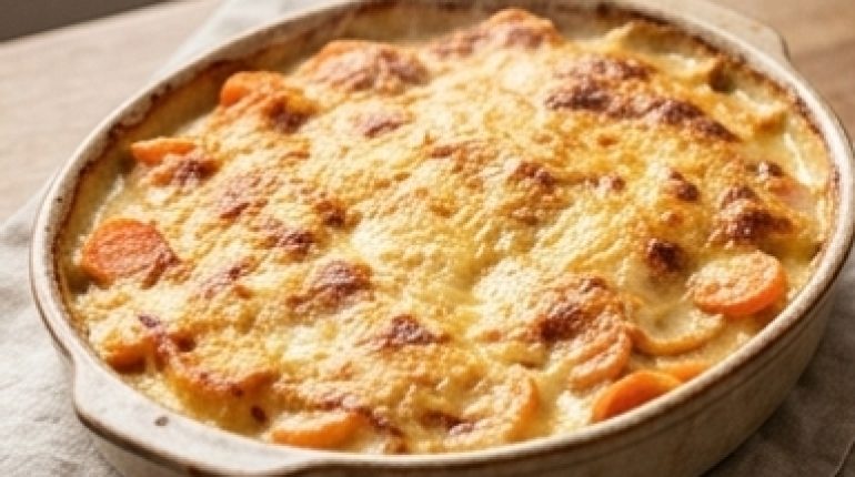 A Wednesday night in January, the fridge looks empty but there’s a kilo of carrots waiting. It’s exactly in these moments that this tartiflette comes into play. No fuss, no hard-to-find ingredients — just a creamy gratin that smells of melted cheese as soon as the oven reaches temperature.