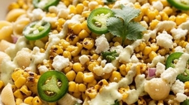 Cold pasta salad is either that bland thing you push around with your fork or the one everyone fights over. The difference comes down to three things: corn that’s actually been charred, a cheese with character, and a zesty lime dressing that doesn’t hold back. This Mexican version belongs to the second category — and it’s ready in 30 minutes.
