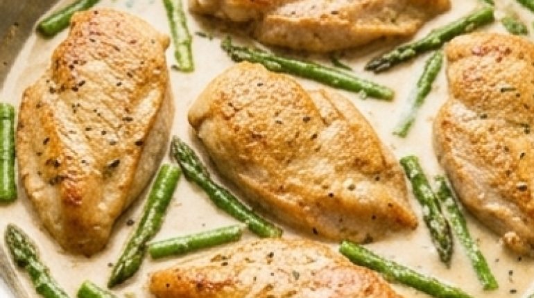 📌 One-Pan Creamy Lemon Chicken with Asparagus