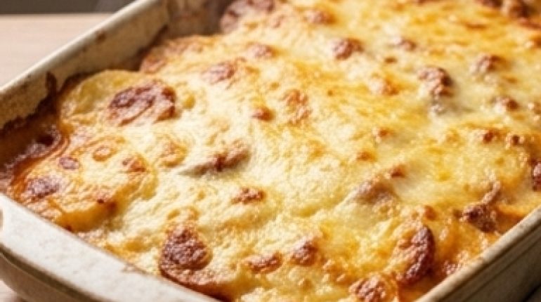 The first thing that hits you is the smell. Even before you open the oven, that warmth filled with melted cheese and reduced tomato spreads throughout the kitchen. This potato gratin with poultry chorizo, tomato, and béchamel is the kind of dish you serve when you want people to feel truly welcomed — without having spent the entire day in the kitchen.