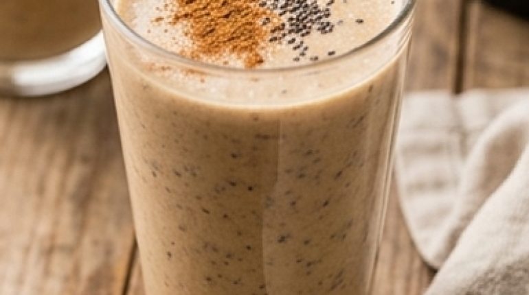 - Chia seeds — They never completely disappear in the blender, and that’s perfectly fine. Those little black dots in the glass don’t change the taste, but they swell slightly on contact with liquid and add body. One teaspoon, no more—the balance is just right like that.