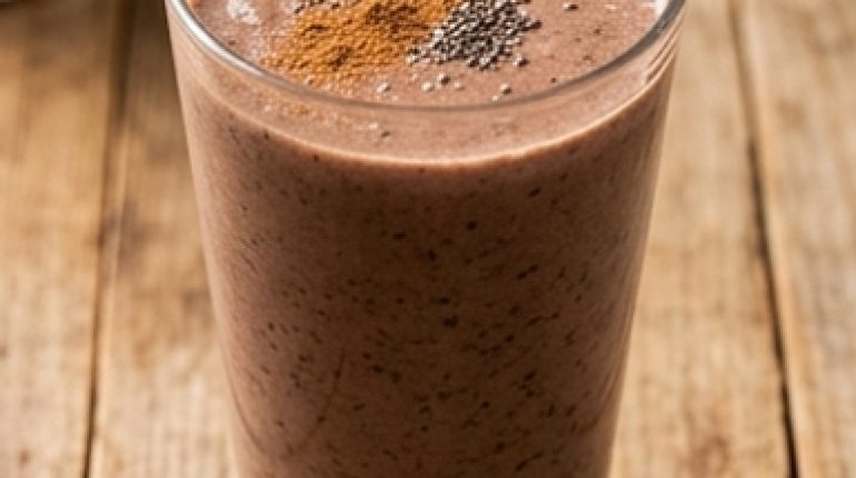 - Chia seeds — One teaspoon is enough. They swell on contact with the milk during blending and provide that slightly thick texture that helps the smoothie hold up. No need to soak them separately — the blender does the work.