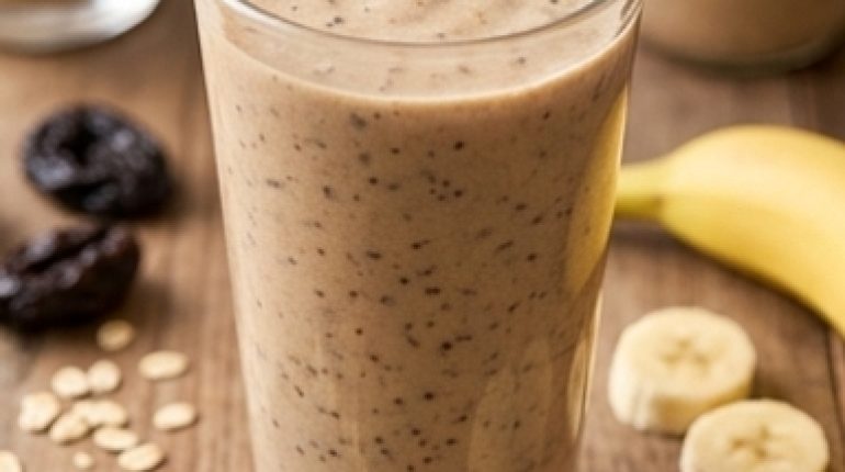 - Prunes — The central ingredient. Five prunes, soaked in cold water since the night before. After a night of hydration, they are plump, soft, and their skin peels easily. Choose Agen prunes if you can — they are sweeter and less acidic than generic varieties. Remove the pit before blending, goes without saying.