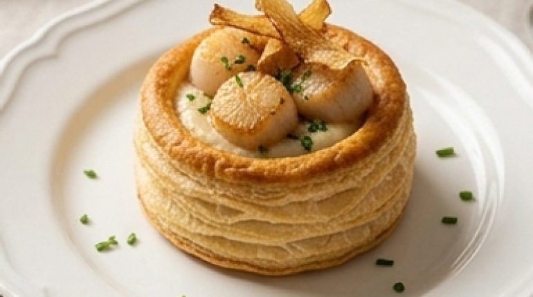 📌 Scallop Vol-au-vent, Jerusalem Artichoke and Salsify Chips