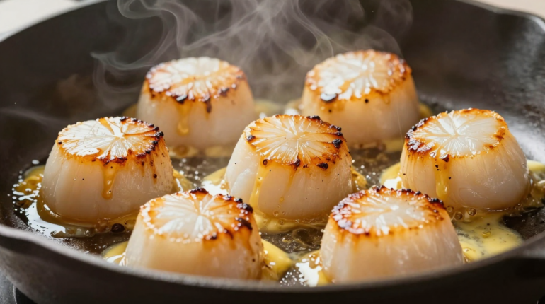 📌 Scallops with morels: the technique of searing and double cooking in the shell for a gourmet dish