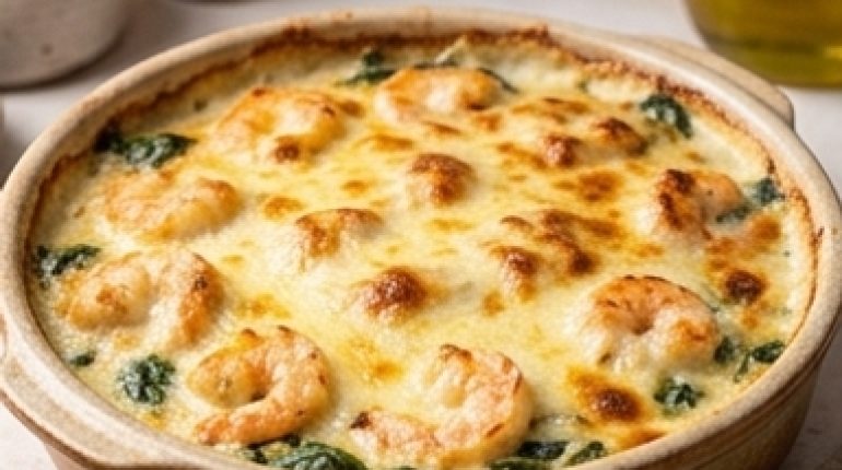 📌 Shrimp and Spinach Gratin with Gruyère