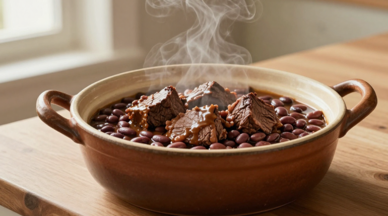 Slow-cooked pot roast with pinto beans is the ideal solution for feeding a family of six with just one kilogram of meat. This slow cooker recipe combines tender beef, creamy beans, and spices to create a comforting dish that fills the whole house with its aroma. Discover how to transform simple ingredients into a generous family meal.