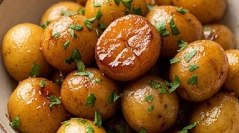 - Small yellow or gold potatoes — It’s really important to choose small ones. Varieties like Charlotte, Ratte, or baby potatoes stay firm during cooking while becoming meltingly soft inside. Avoid floury potatoes like Bintje — they fall apart and you’ll end up with caramelized mashed potatoes. Not bad, but not the goal.