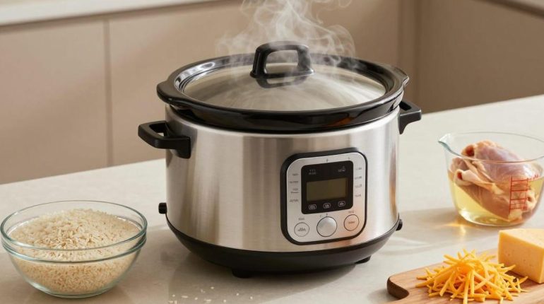 📌 Slow Cooker Rice: how this one-pot dish combines chicken, cheddar, and broth for an effortless complete meal