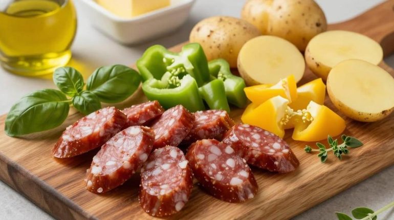 Smoked sausage and roasted potatoes: here is a dish that perfectly embodies simple and tasty cuisine. This versatile recipe allows for improvisation based on the vegetables available in your refrigerator. Add carrots, zucchini, or broccoli, and you will always get a delicious result that will delight the whole family.