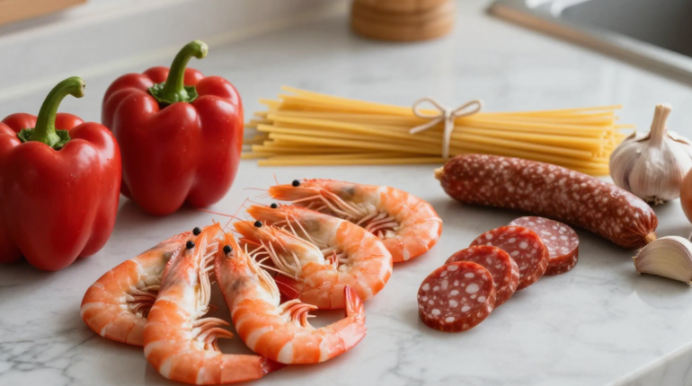 📌 Spaghetti with Bell Pepper Cream, Chorizo, and Shrimp: how to master this Mediterranean dish in 30 minutes