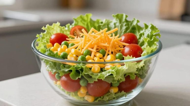 📌 Weight Watchers Layered Salad: 5 points per serving for a complete bacon-cheddar dish